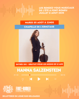 Entrée 20€. Gratuit pour les moins de 12 ans. Billetterie sur place ou en ligne : https://www.helloasso.com/associations/office-de-la-culture-et-du-patrimoine-de-font-romeu-odeillo-via/evenements/hanna-salzenstein