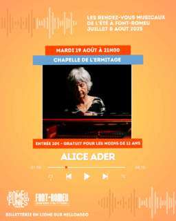 Entrée 20€. Gratuit pour les moins de 12 ans. Billetterie sur place ou en ligne : https://www.helloasso.com/associations/office-de-la-culture-et-du-patrimoine-de-font-romeu-odeillo-via/evenements/alice-ader